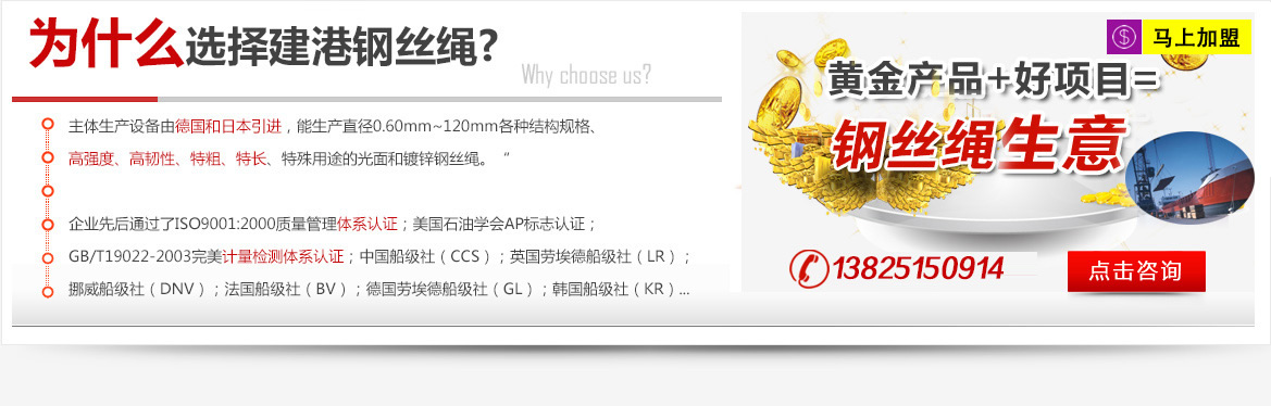 [詳情]建港鋼絲繩加盟是3年前開(kāi)始做的,選擇與建港鋼絲繩合作很簡(jiǎn)單,當(dāng)時(shí)我想再找一個(gè)鋼絲繩品牌,通過(guò)朋友介紹