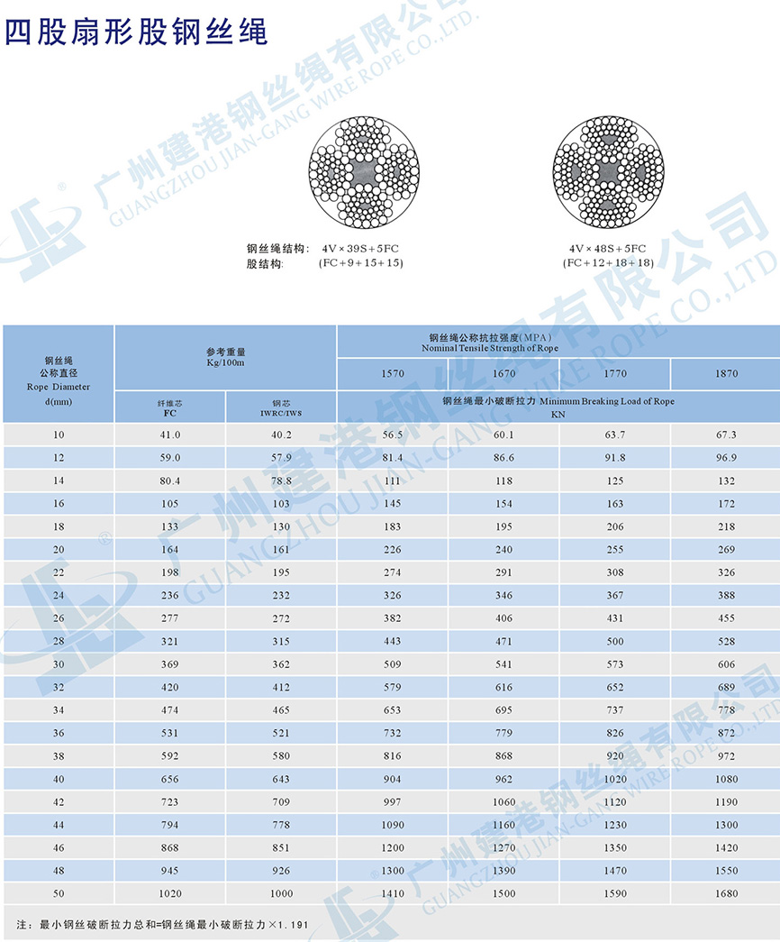 四股扇形股鋼絲繩